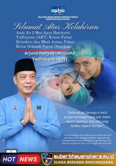 Suberbhayangkara.my.id, | Banyuwangi – Suasana kebahagiaan tengah menyelimuti keluarga Ketua Umum Partai Demokrat, Agus Harimurti Yudhoyono. Bersama sang istri, Anissa Pohan, AHY resmi dikaruniai putra kedua, menambah lengkap kebahagiaan keluarga kecil mereka. Kelahiran sang buah hati menjadi kabar yang disambut hangat, tidak hanya oleh keluarga dan kerabat, tetapi juga oleh kader Partai…